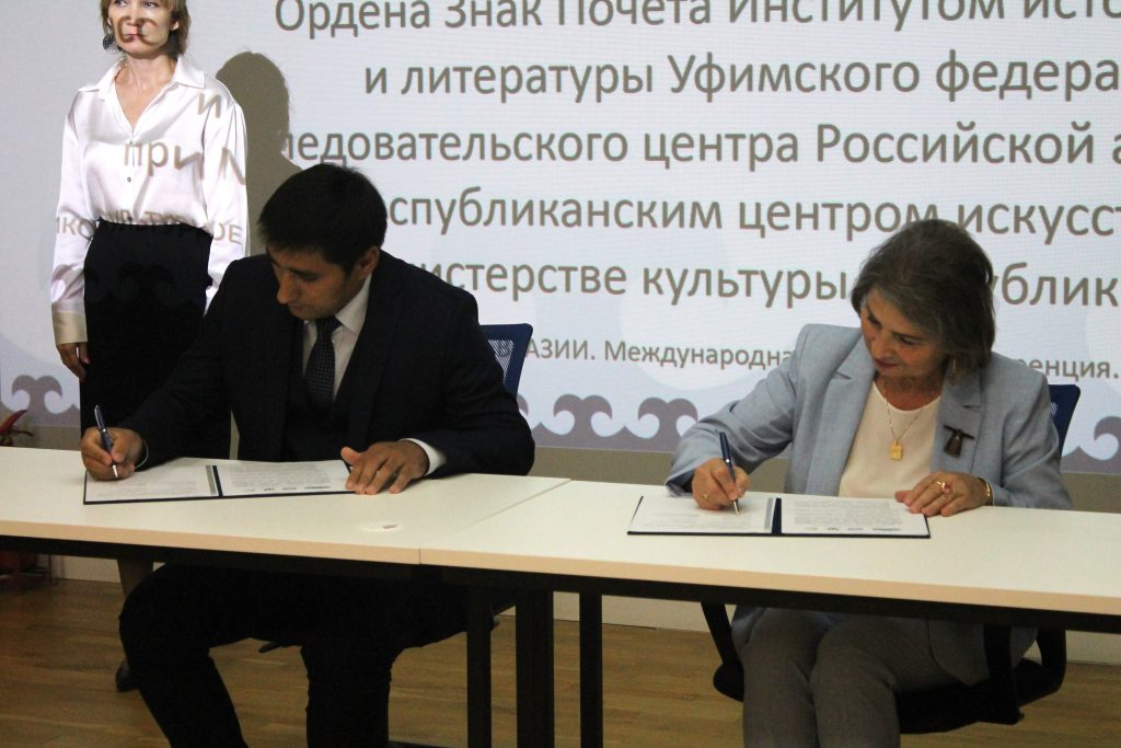 Сегодня в Ордена Знак Почета Институте истории, языка и литературы УФИЦ РАН прошла Международная научная конференция «Историко-культурное наследие Евразии», на торжественном открытии которой прошло подписание Соглашения о сотрудничестве между ИИЯЛ УФИЦ РАН и Республиканским центром искусства бахши, входящим в систему Министерства культуры Республики Узбекистан!!!