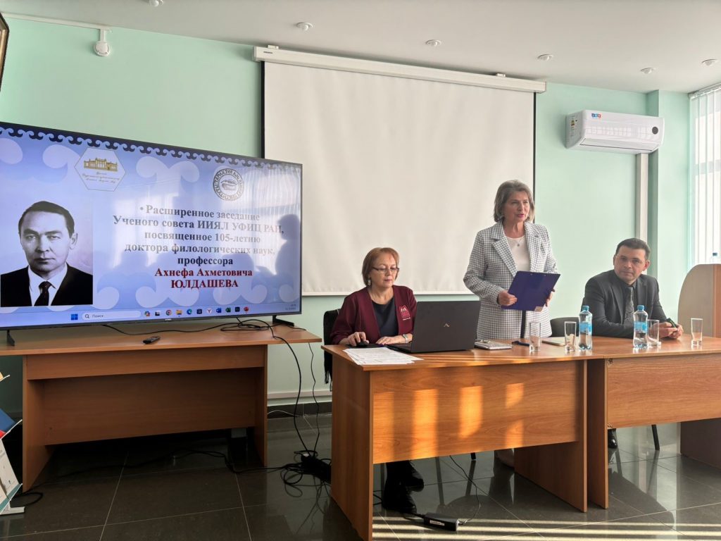 Сегодня в Ордена Знак Почета Институте истории, языка и литературы Уфимского федерального исследовательского центра РАН состоялось расширенное заседание Ученого совета, посвященное 105-летию доктора филологических наук, профессора Ахнефа Ахметовича Юлдашева (1920-1988).
