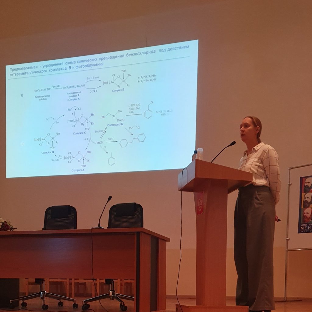 Вторая премия – младшему научному сотруднику лаборатории химии высоких энергий и катализа к.х.н. Кристине Сергеевне Василюк с исследованием «Гетерометаллические системы на основе двухвалентных лантанидов и алюминийорганических соединений как новый класс фотокатализаторов восстановительного дегалогенирования бензилхлорида».