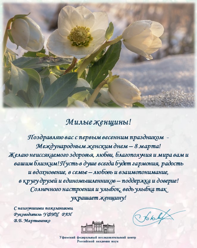 Поздравление руководителя УФИЦ РАН Василия Борисовича Мартыненко с 8 марта