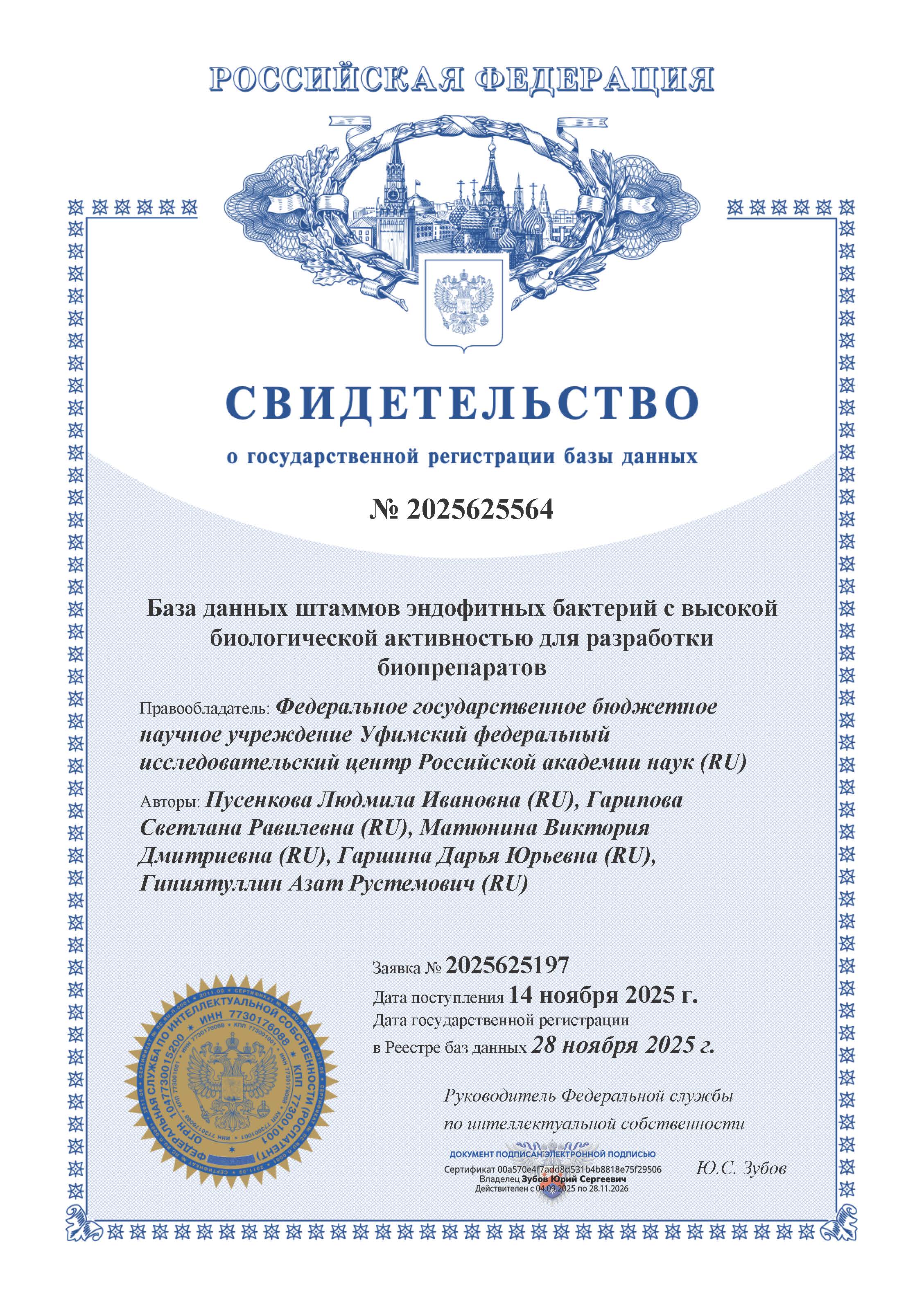 Учеными УФИЦ РАН получено свидетельство о государственной регистрации “Базы данных штаммов эндофитных бактерий с высокой биологической активностью для разработки биопрепаратов”.