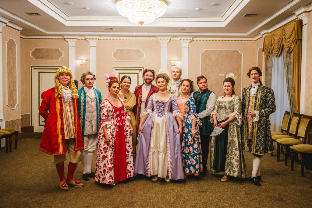 - Показательные танцы – реконструкция придворных и салонных танцев начала XVIII века в аутентичном костюме.