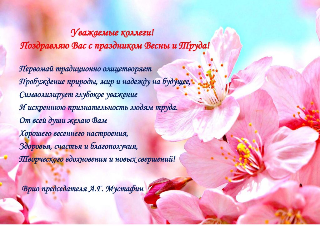 Уважаемые коллеги! Поздравляю Вас с праздником Весны и Труда!