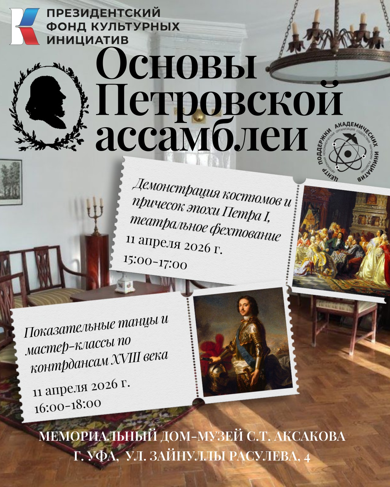 «Основы Петровской ассамблеи»: исторические костюмы, танцы и театральное фехтование в Мемориальном доме-музее С.Т. Аксакова 31 марта 2026